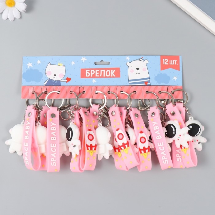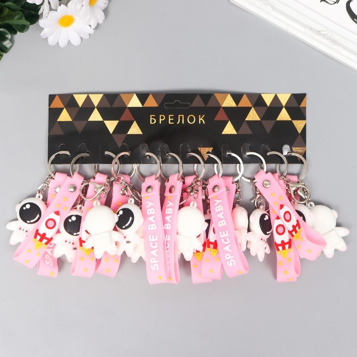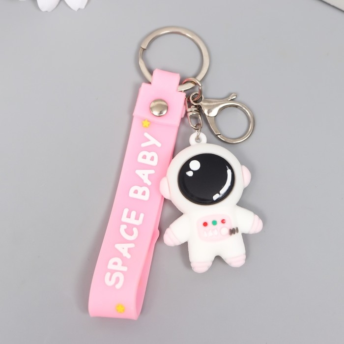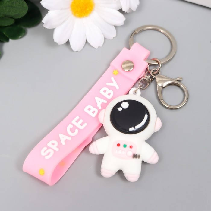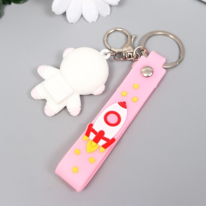 Брелок резина "Космонавт в бело-розовом скафандре" с браслетом и карабином 4,5х2,4х3,2 см