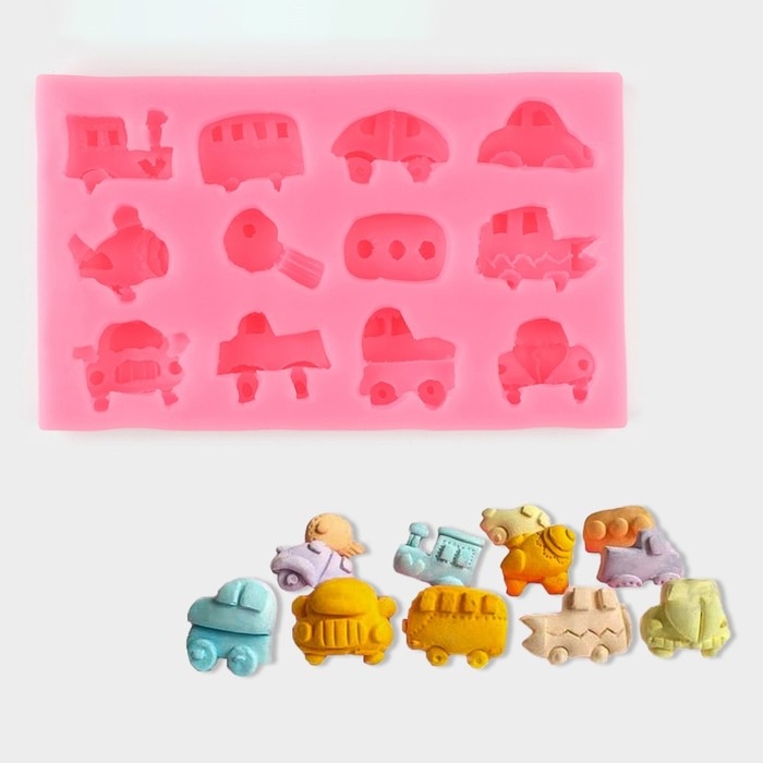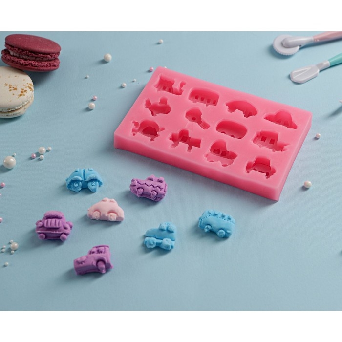 Молд «Машинки», силикон, 14,5×8,8×1,8 см, цвет розовый