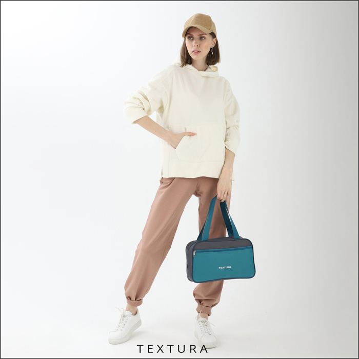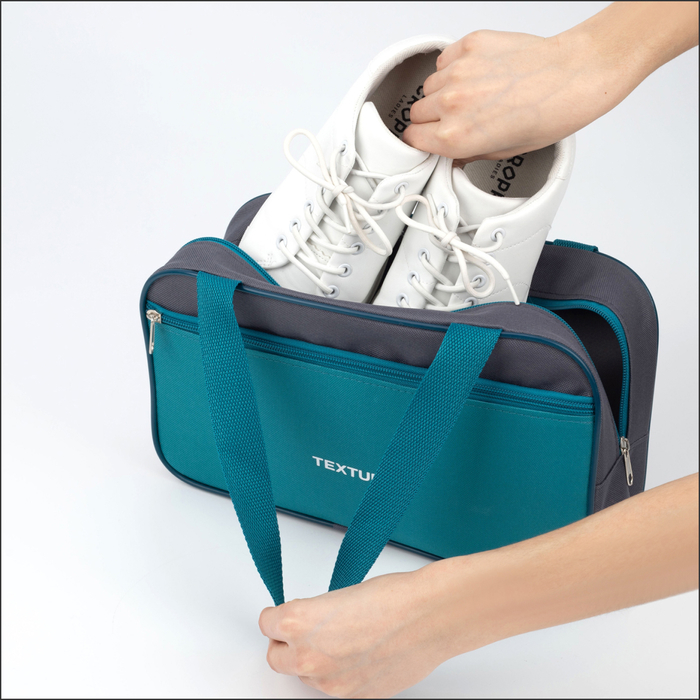 Сумка для обуви на молнии, наружный карман, TEXTURA, цвет серый/бирюзовый