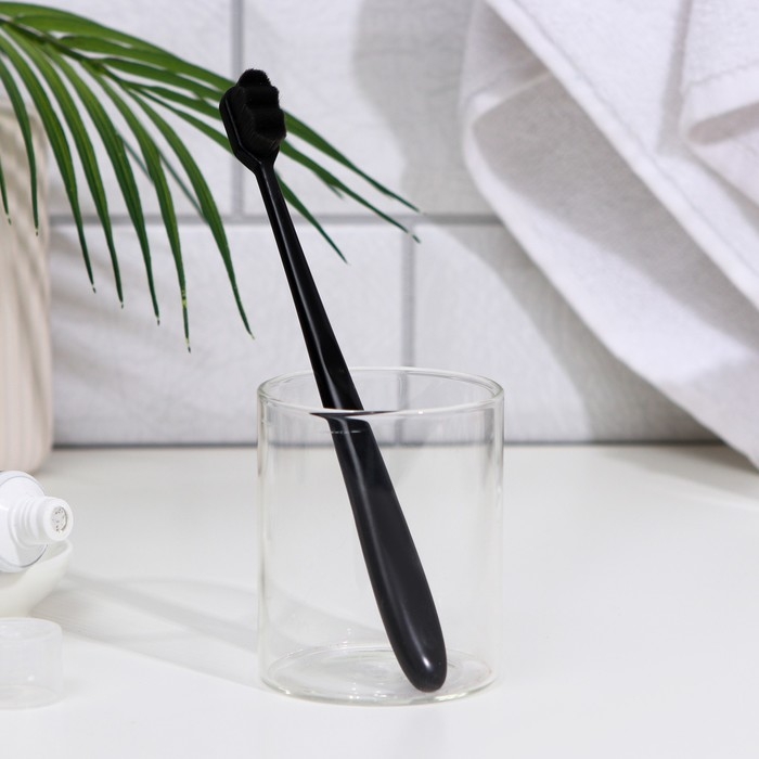 Сверхмягкая зубная щётка, 10000 щетинок, ребристая, чёрная