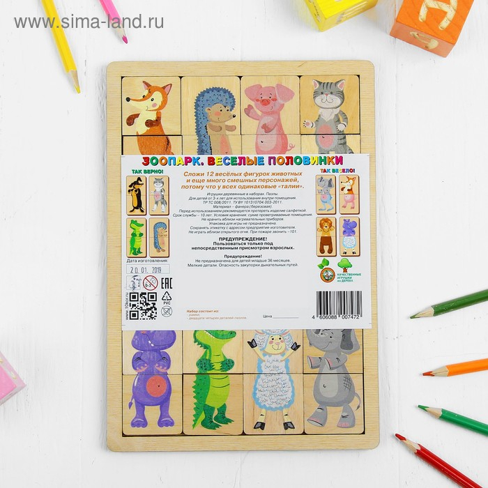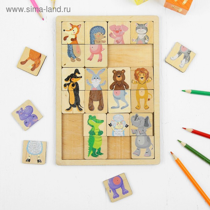 Развивающая игра из дерева «Зоопарк. Весёлые половинки» познакомит ребёнка с разными животными. Сложите 12 фигурок животных или придумайте своё сказочное существо, соединив верх одного и низ другого животного. Получится весело! Игра подходит для занятий дома и в детском саду.
