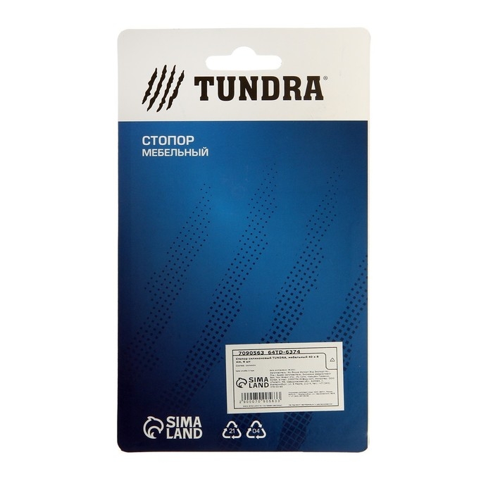 Стопор силиконовый ТУНДРА, мебельный 40 х 8 мм, 4 шт.