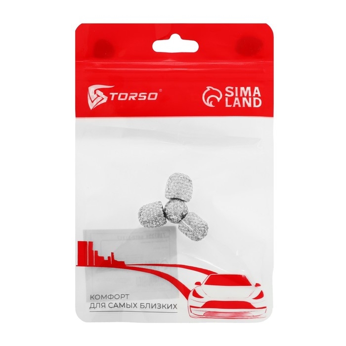 Колпачок на автомобильный вентиль TORSO, хром, набор 4 шт