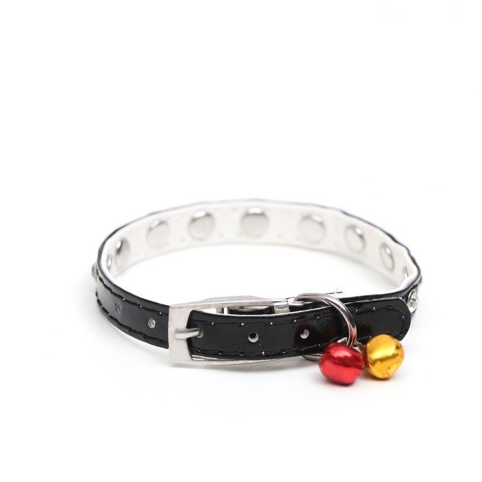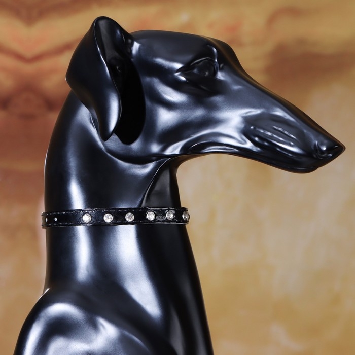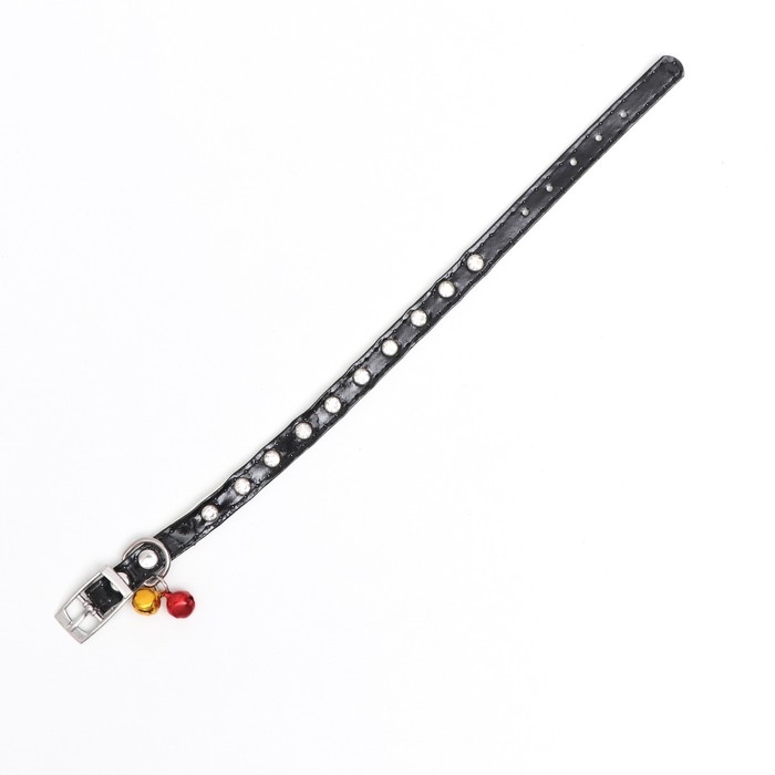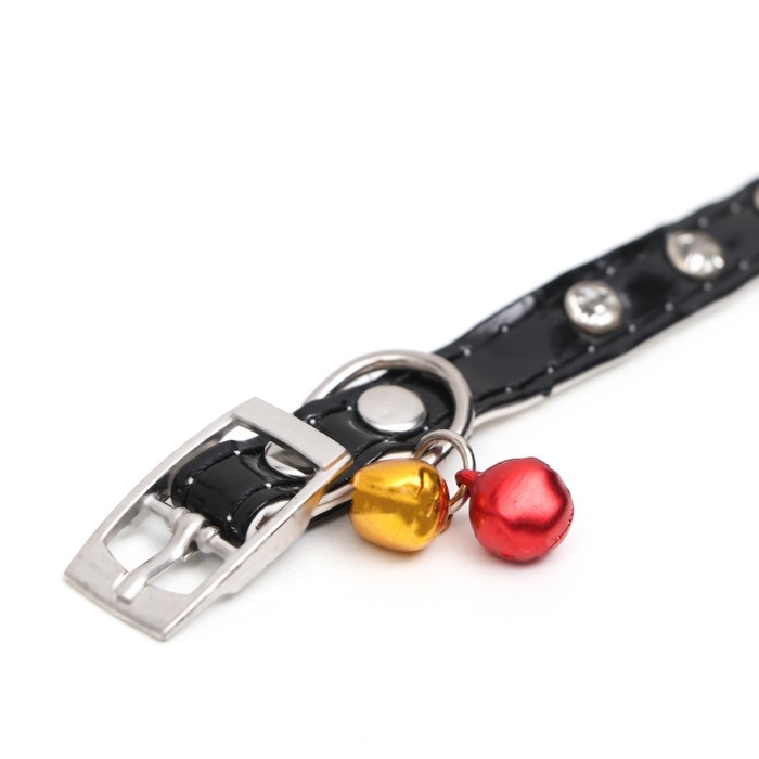 Ошейник с круглыми стразами, 28 х 1 см, ОШ 21-25 см, искусств. кожа, чёрный