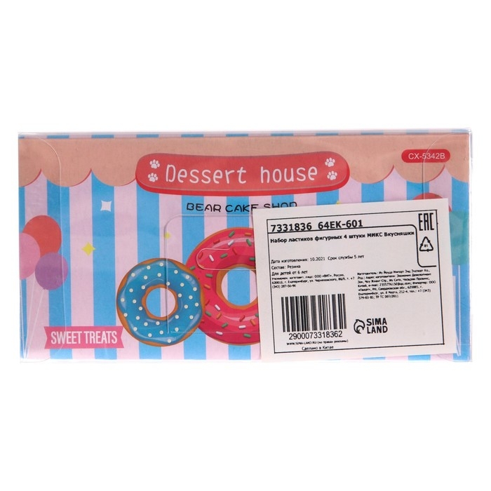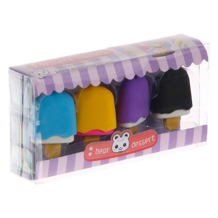 Набор фигурных ластиков «Вкусняшки», 4 штуки, МИКС