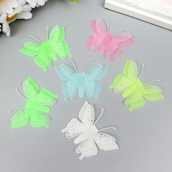 Наклейка фосфорная пластик "Ажурные бабочки 6х5 см" набор 6 шт 17х12 см