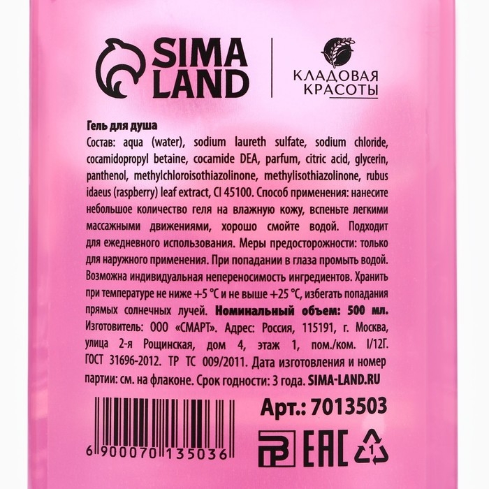 Гель для душа с экстрактом лесной малины, мягкость и наслаждение, 500 мл, КЛАДОВАЯ КРАСОТЫ