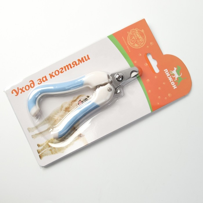 Ножницы-когтерезы "Пижон" Premium изогнутые, с упором для пальца, бело-серые