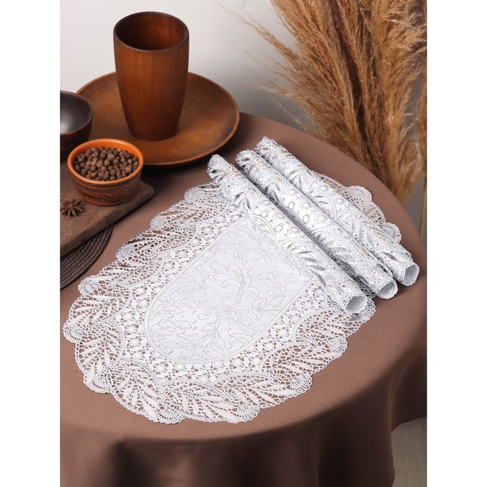 Салфетки сервировочные на стол Доляна «Подсолнухи», 46×30 см, 4 шт, ПВХ, цвет серебряный