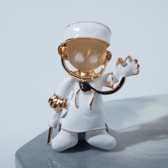 Брошь "Доктор" с фонендоскопом, цвет белый в золоте