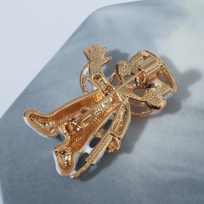 Брошь «Кошка» с рыбкой, цвет белый в золоте