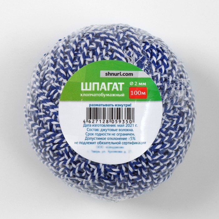 Шпагат хлопчатобумажный, 100 м, цвет МИКС