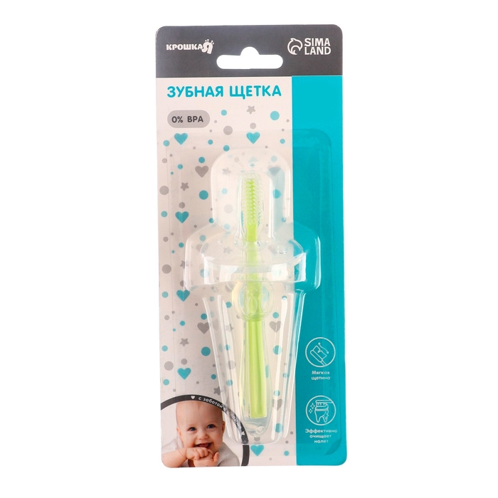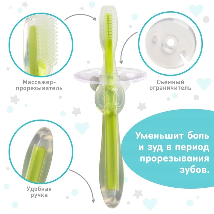 Прорезыватель для зубов детский, Крошка Я, щеточка, массажер для десен, грызунок для малыша, от 3 мес., цвет зелёный.
