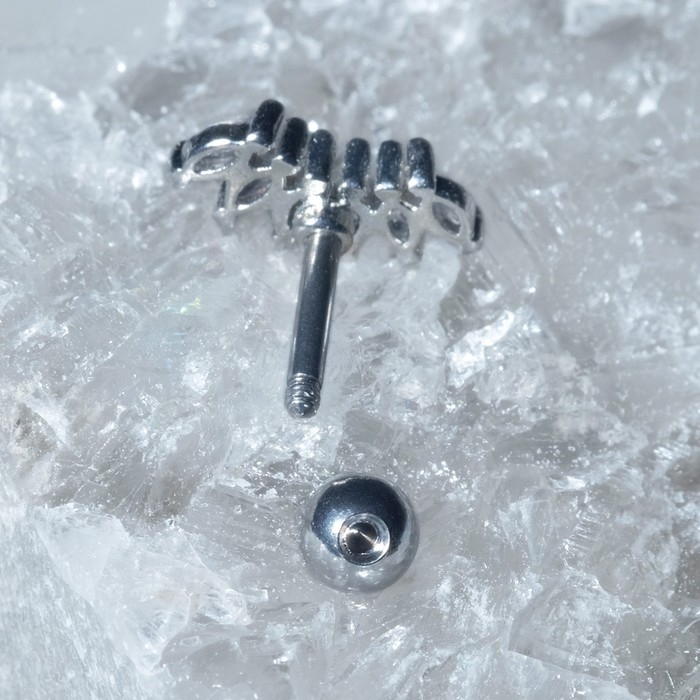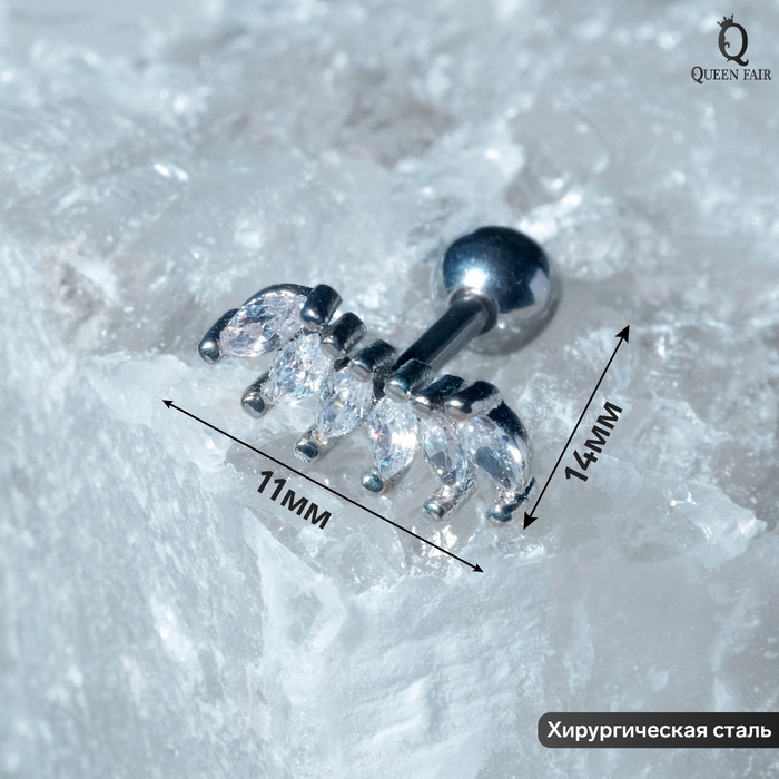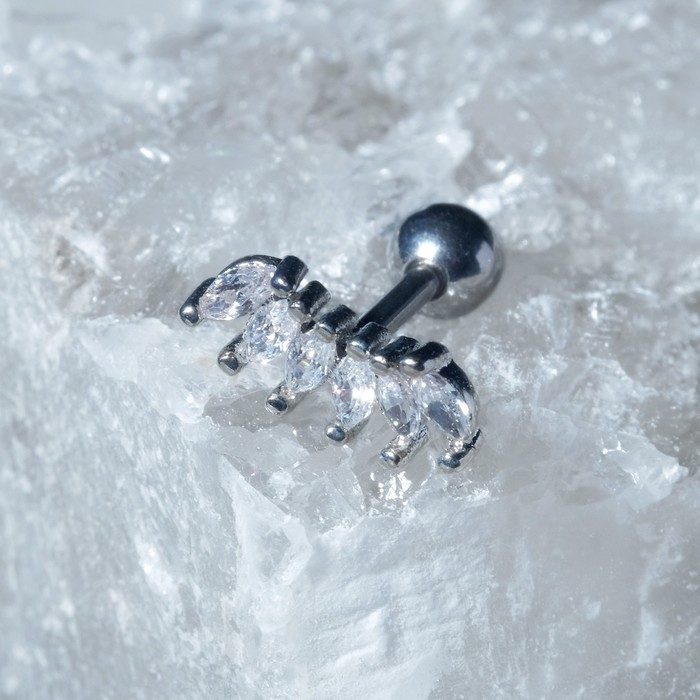 Пирсинг в ухо (хеликс) «Листья», L=1,4см, цвет белый в серебре
