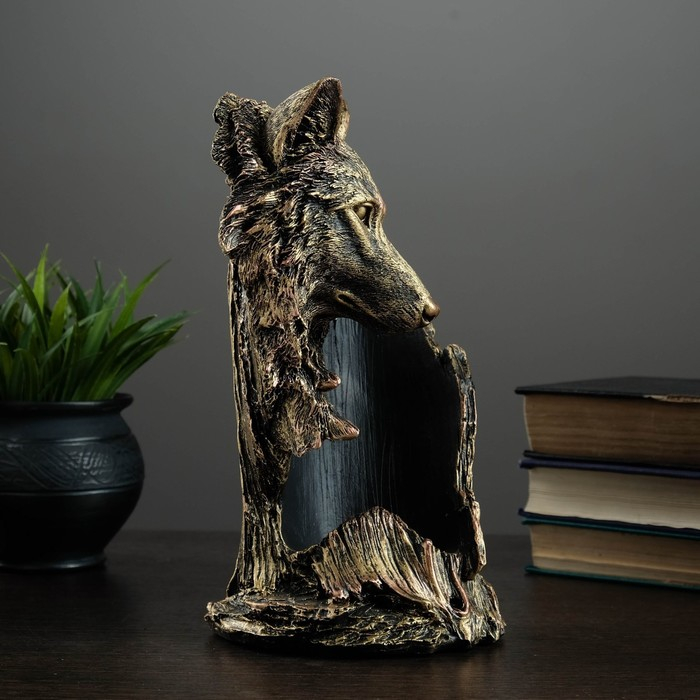Подставка под бутылку "Волк" бронза 14х16х25см