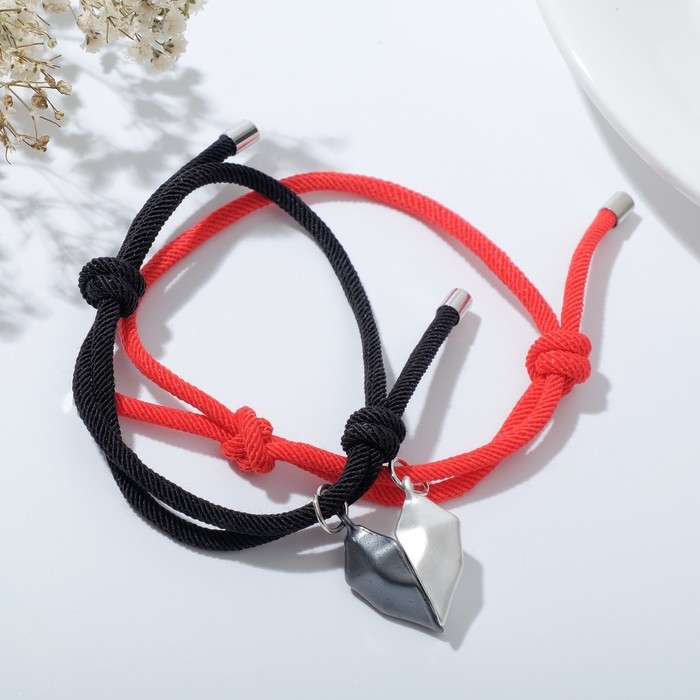 Браслеты «Неразлучники» на магните, половинки сердца, цвет чёрно-красный, 7 см