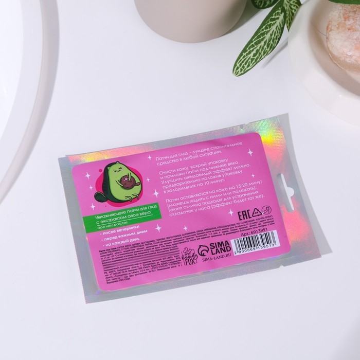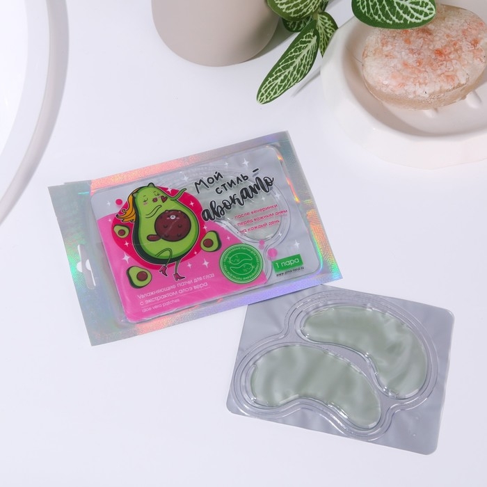 Патчи для области вокруг глаз «Мой стиль-авокадо», 1 пара, гидрогелевые с экстрактом алое, BEAUTY FОХ
