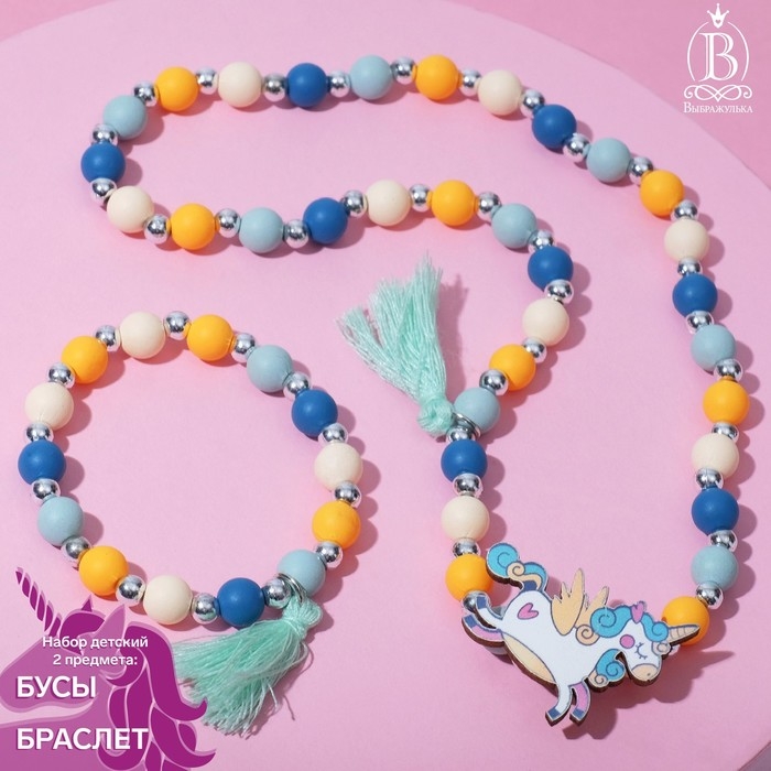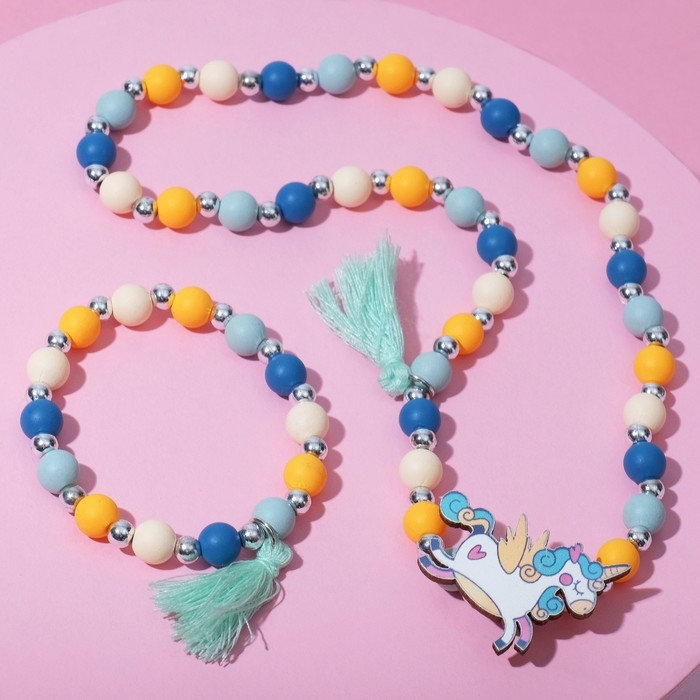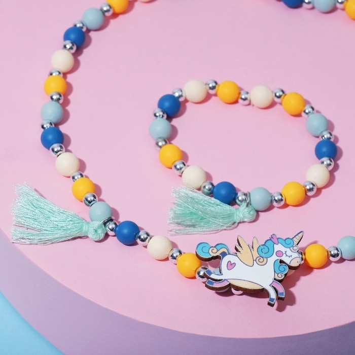 Набор детский «Выбражулька» 2 предмета: бусы, браслет, единорог, с кисточками, цветной