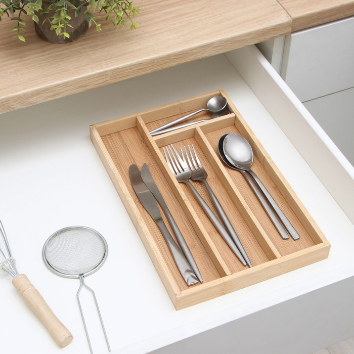 Сушилка для столовых приборов Доляна «Бамбуковый лес», 33,5×22×3 см, 4 ячейки