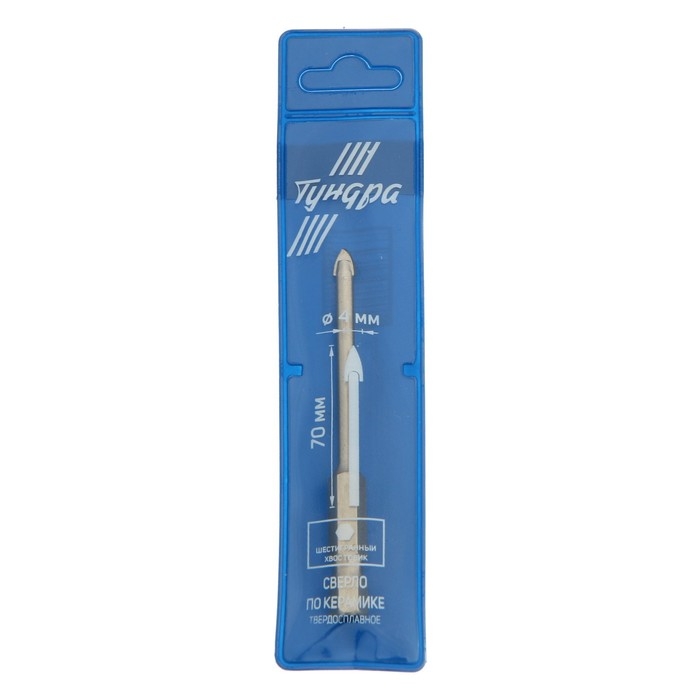 Сверло по керамике твердосплавное ТУНДРА, шестигранный хвостовик, 4 мм