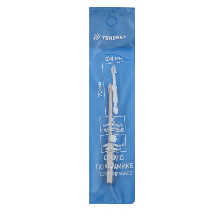 Сверло по керамике твердосплавное ТУНДРА, крестовый наконечник, шестигр. хвостовик, 4 мм