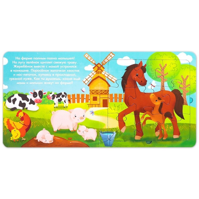 Книга картонная «Мамы и детки», 12 стр., с пазлами 5 шт.