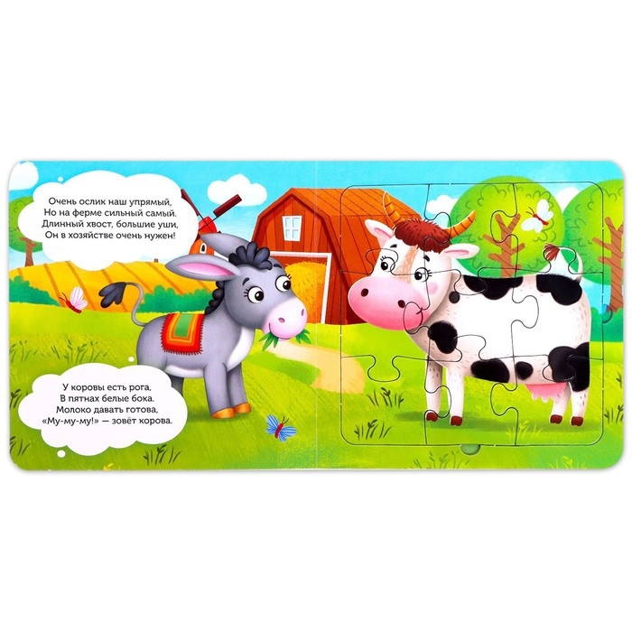 Книга картонная «Они живут на ферме», 12 стр., с пазлами 5 шт.