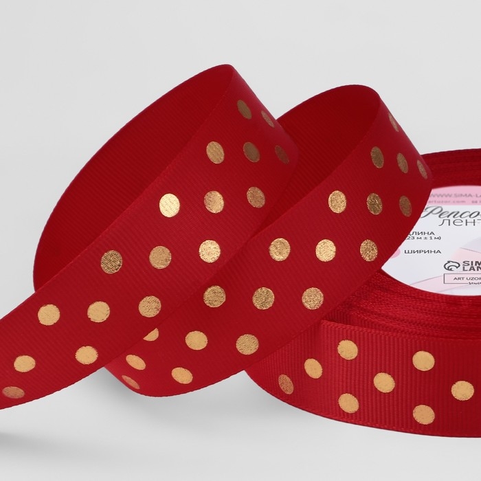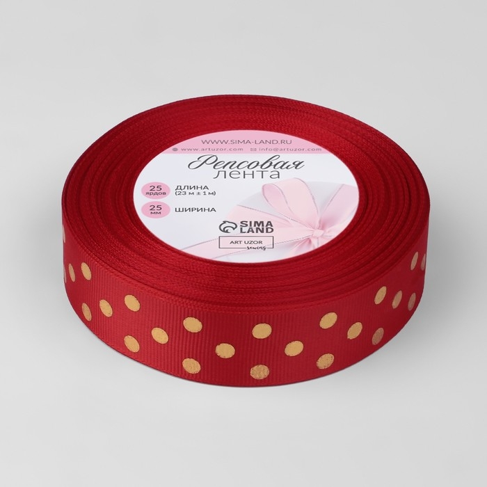 Лента репсовая с тиснением «Горох», 25 мм, 23 ± 1 м, цвет красный №026
