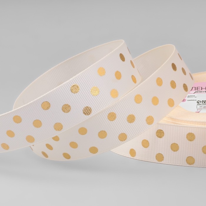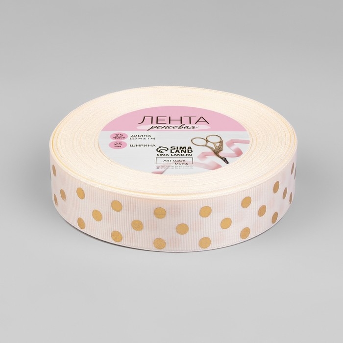 Лента репсовая с тиснением «Горох», 25 мм, 23 ± 1 м, цвет бежевый №181