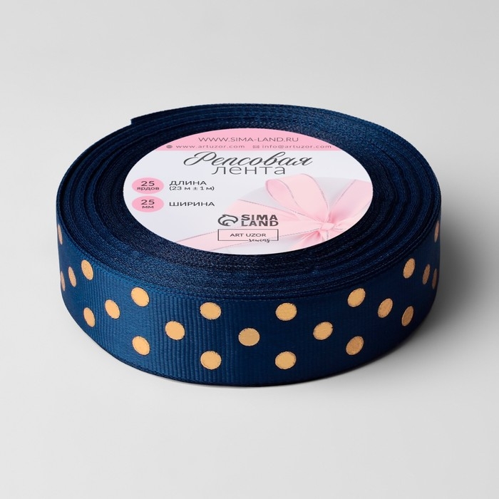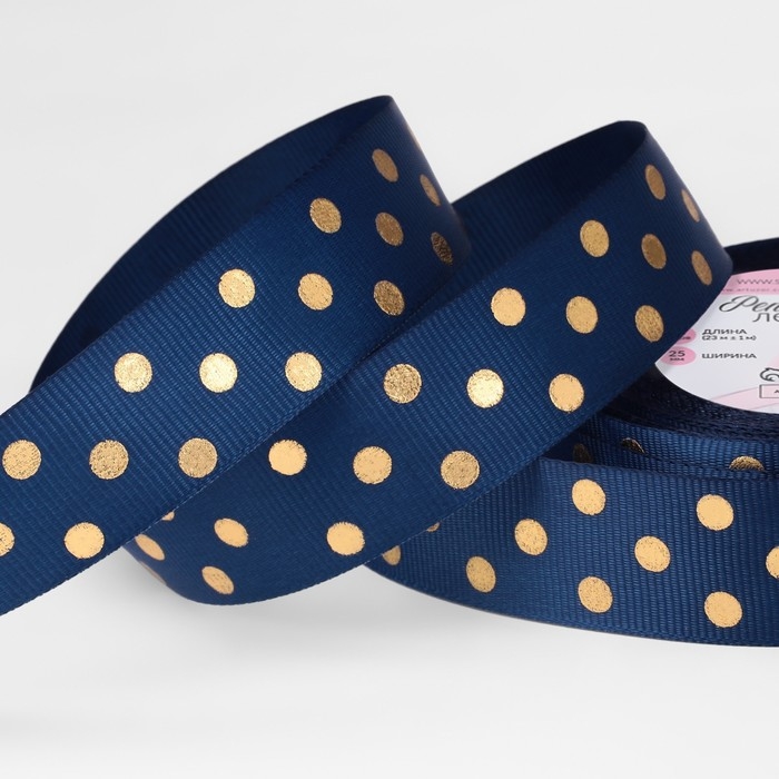 Лента репсовая с тиснением «Горох», 25 мм, 23 ± 1 м, цвет тёмно-синий №036