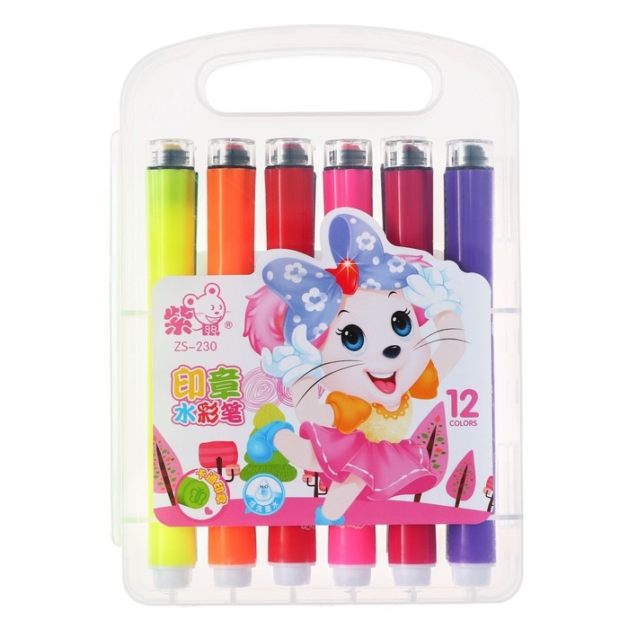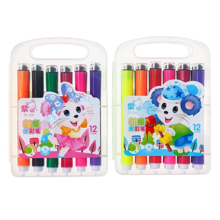 Фломаcтеры 12 цветов, кистевидный наконечник, с печатью