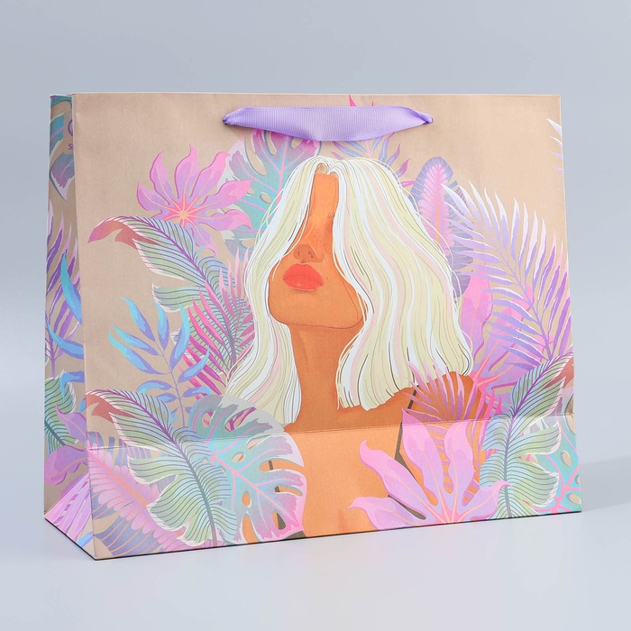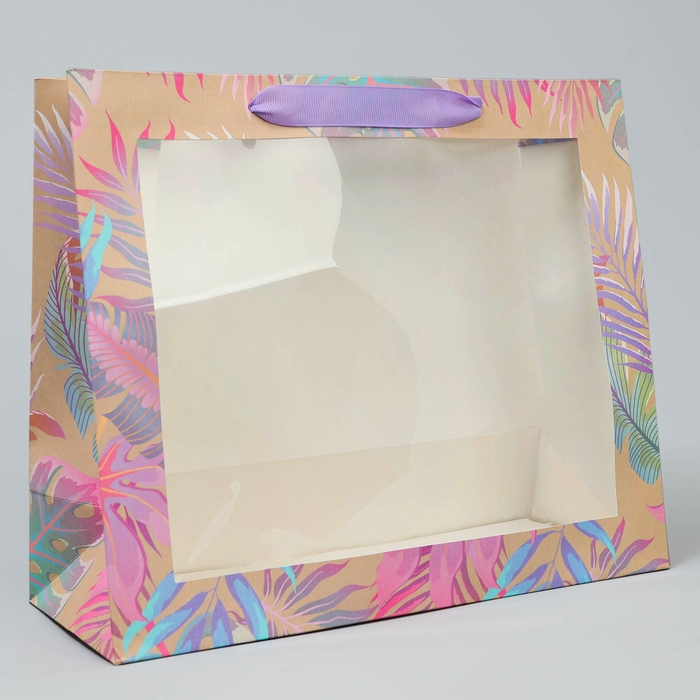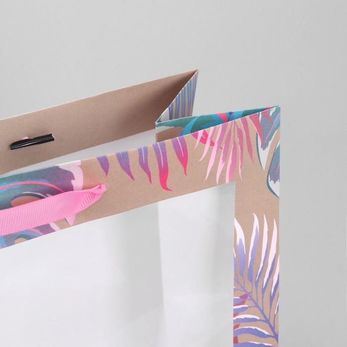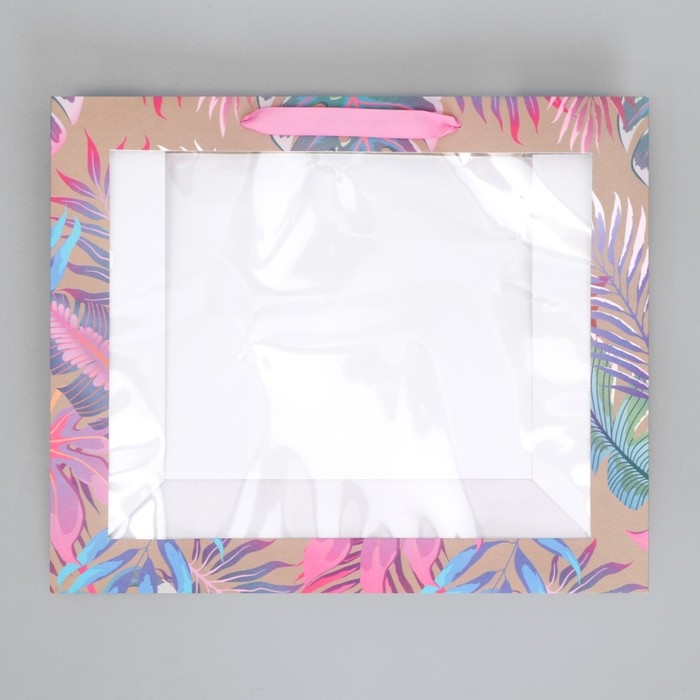 Пакет подарочный крафтовый с пластиковым окном, упаковка, «Нежность», 31 х 26 х 11 см