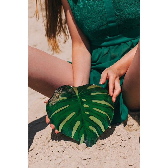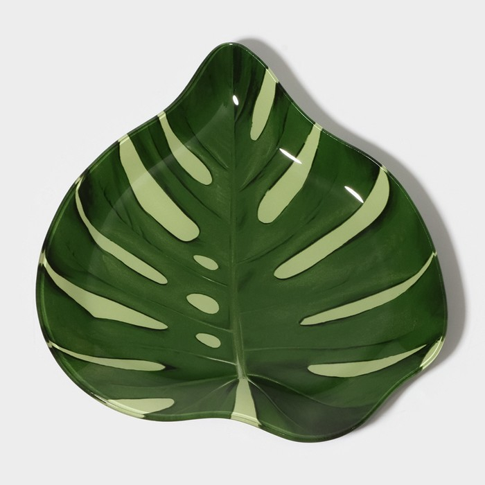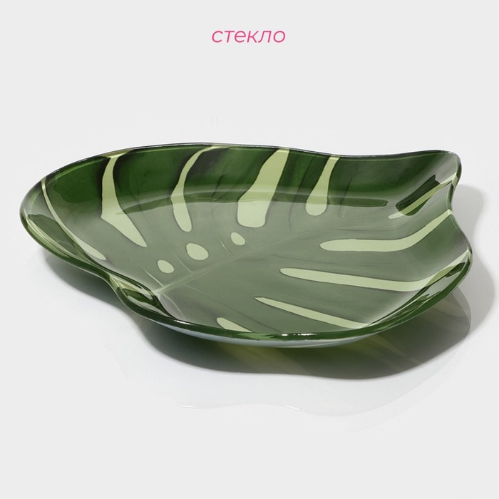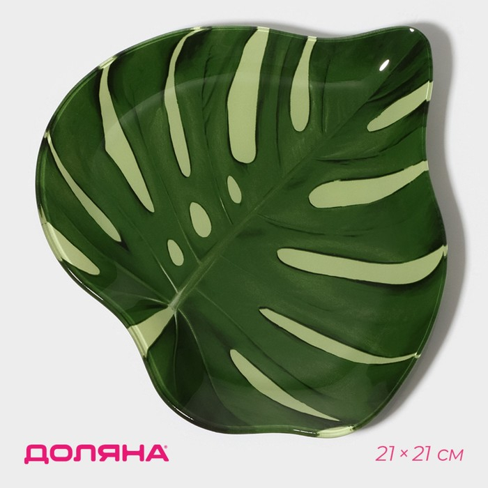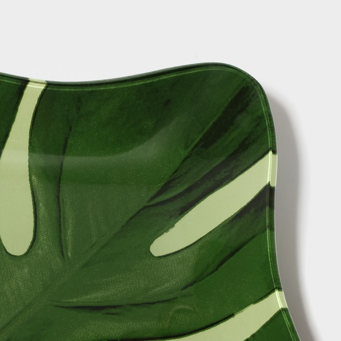 Блюдо стеклянное сервировочное Доляна «Монстера», 21×21 см, цвет зелёный