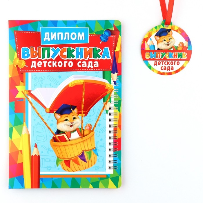 Диплом и медаль на Выпускной детского сада «Котик», 13,7 х 20,8 см, 250 гр/кв.м