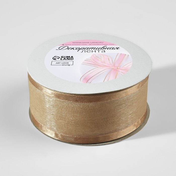 Лента декоративная, капроновая/атласная, 40 мм, 18 ± 1 м, цвет бежевый