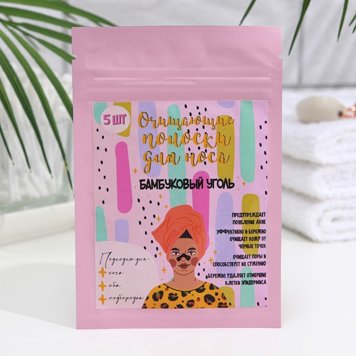 Полоски очищающие для носа с экстрактом бамбукового угля, набор 5 шт.