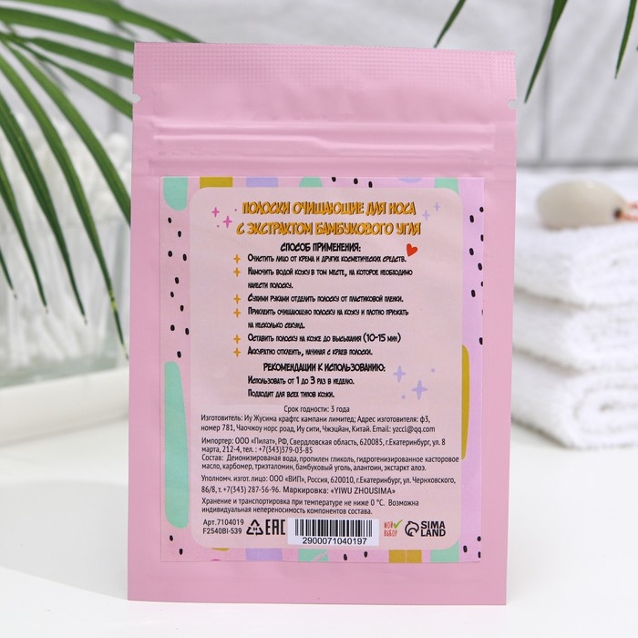 Очищающая полоска для носа с экстрактом бамбукового угля: