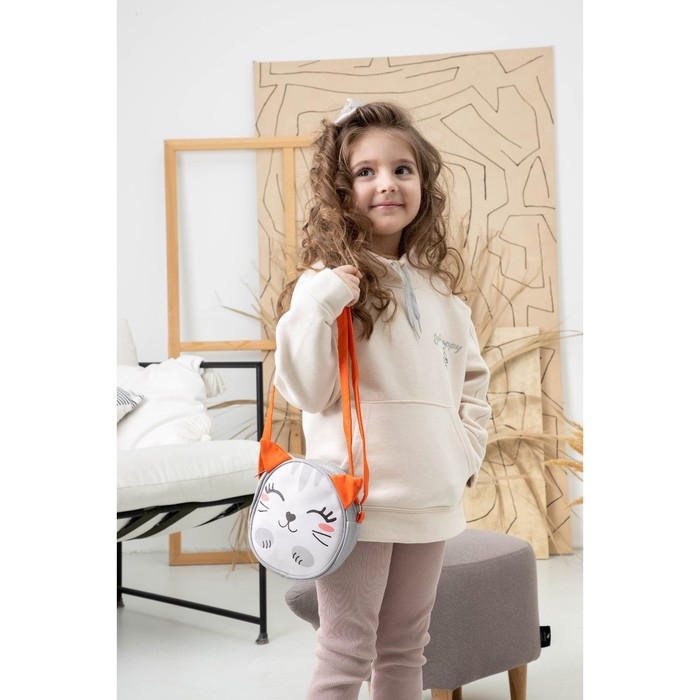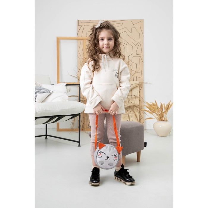 Сумка детская для девочки "Котик", на молнии, цвет серый