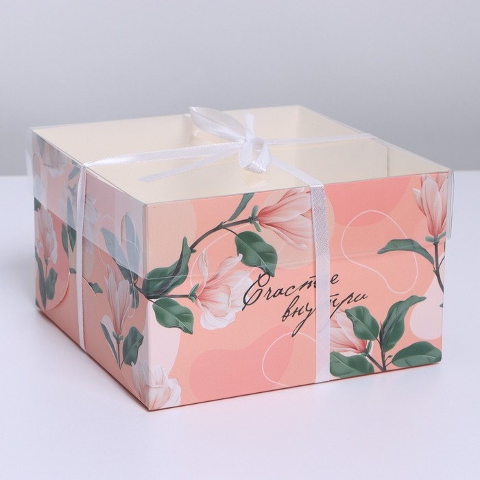 Коробка для капкейков, кондитерская упаковка, 4 ячейки «Счастье внутри», 16 х 16 х 10 см