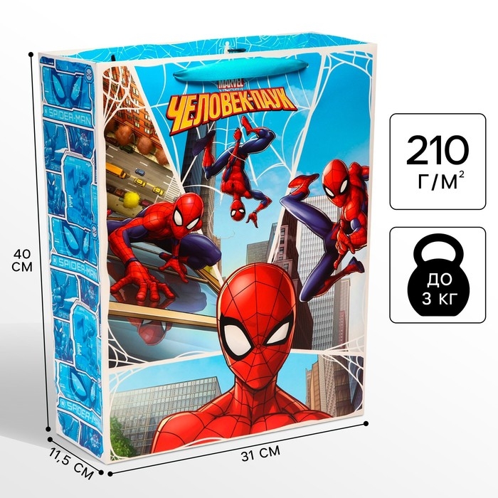 Пакет подарочный, 31 х 40 х 11,5 см, упаковка, Человек-паук