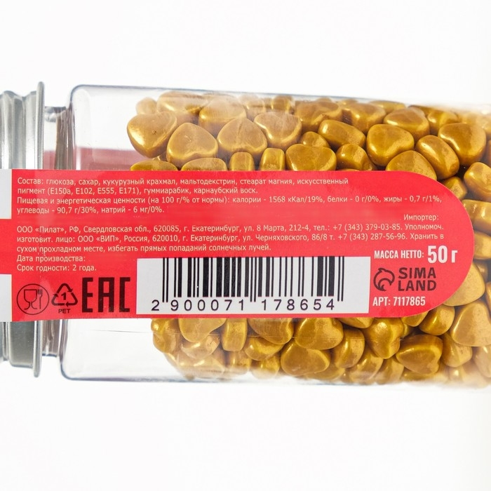 Кондитерская посыпка «Золотое сердце», 50 г