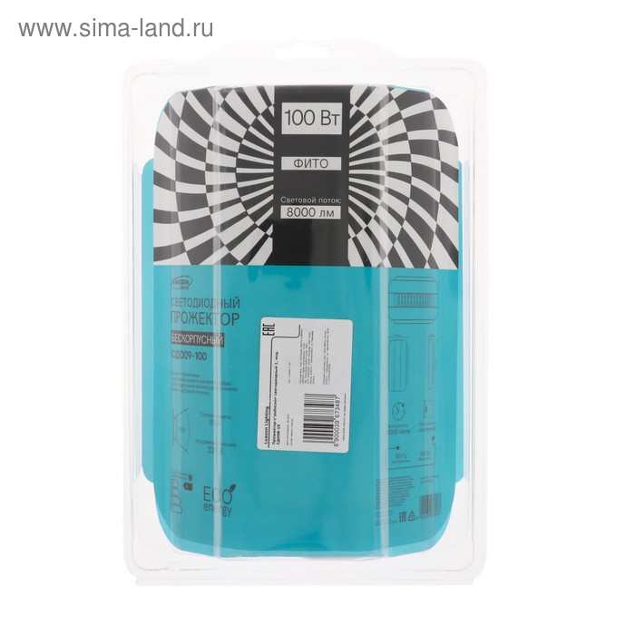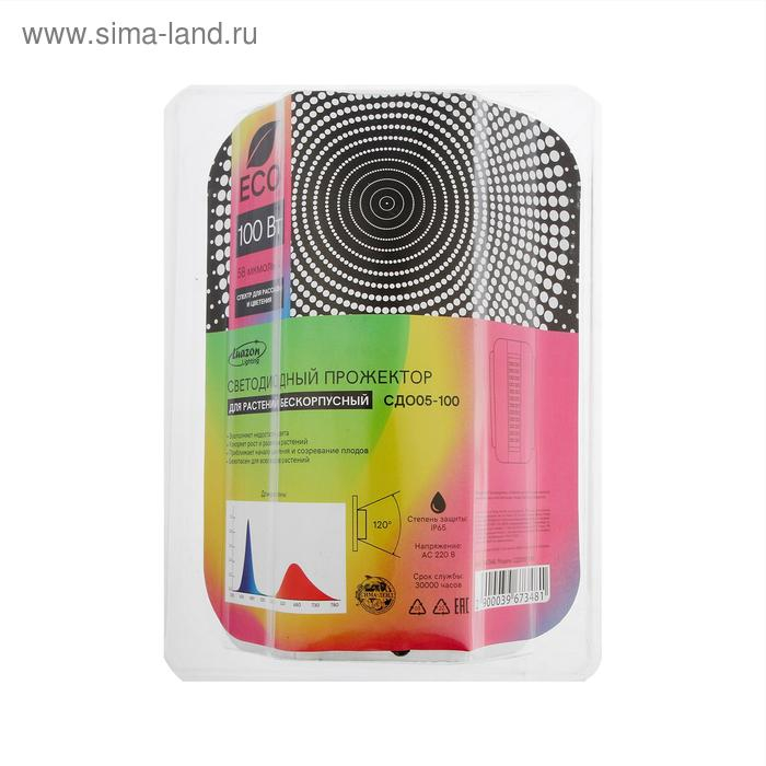 Фитопрожектор светодиодный Luazon СДО09-100, 100 Вт, IP65, 220В, мультиспектр., бескорпусный