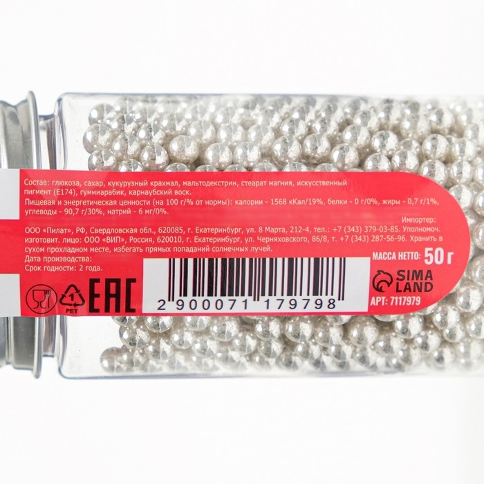 Кондитерская посыпка «Шестой элемент», 4 мм , 50 г