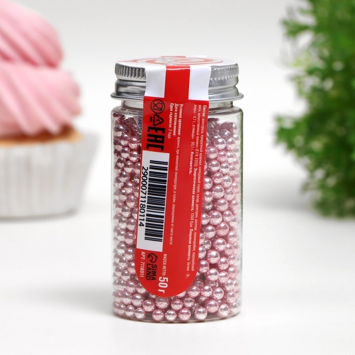 Кондитерская посыпка «Стильное решение», 4мм, розовая, 50 г