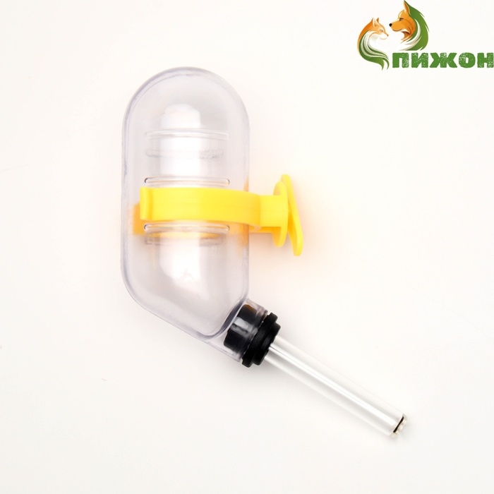 Поилка для грызунов, 60 мл, прозрачная с жёлтым креплением