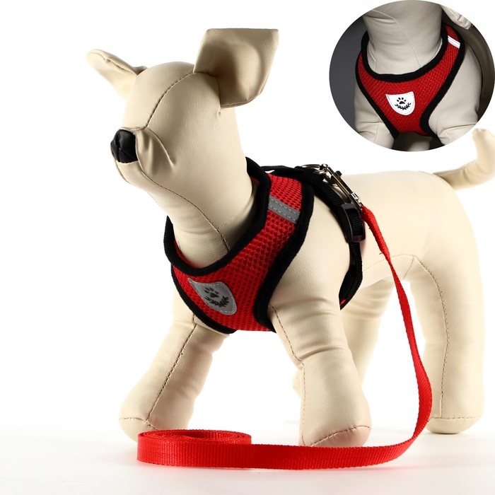 Комплект амуниции со светоотражающей нашивкой, S, ОШ 24 см, ОГ 28-33 см, красный