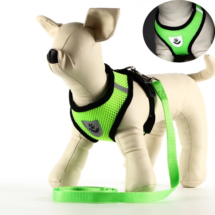 Комплект с мягкой шлейкой "Веточки", размер S, поводок 120 х 1,5 см, ОГ 28-62 см, зеленый