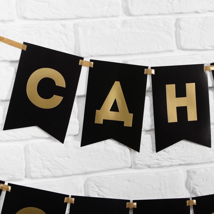 Гирлянда тиснение на бумаге «С Днем Рождения», черная, золотые буквы, дл. 156 см., 250 гр/кв.м