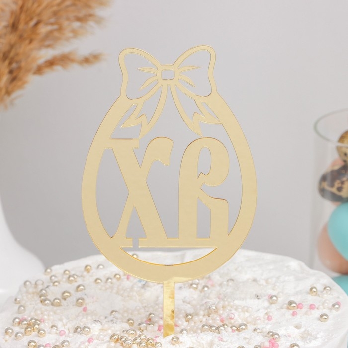 Пасхальный топпер для торта ХВ, размером 8,5x17 см, выполнен в элегантном золотом цвете, станет изысканным украшением любого праздничного кулича. Его утончённый дизайн подчеркивает торжественность праздника, создавая атмосферу тепла и светлого настроения на вашем столе.