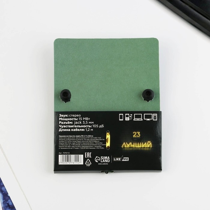 Наушники на открытке "23.02", модель RX-4, 13 х 11 см